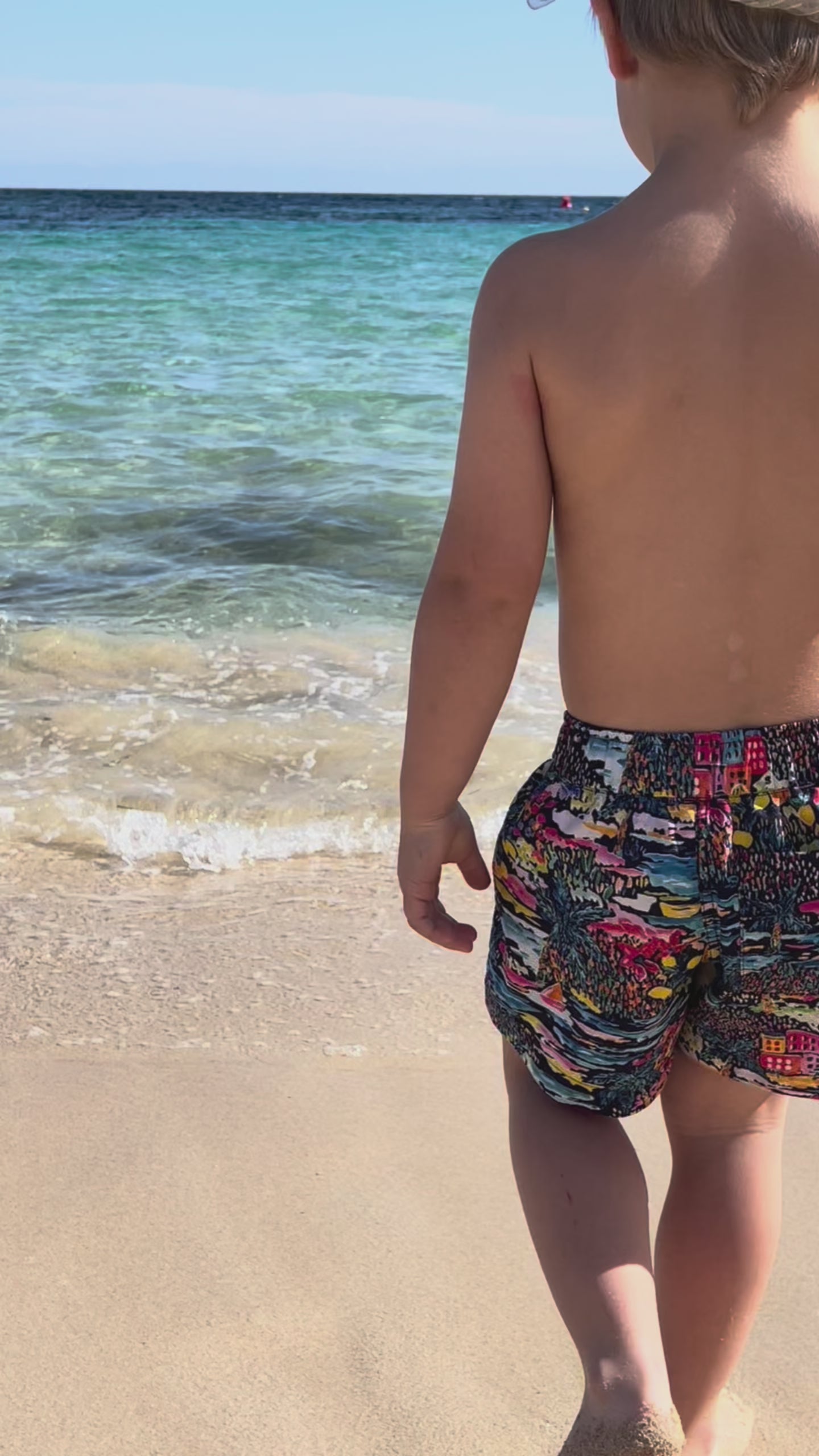 Boys' short-sleeved anti-UV jumpsuit, green striped