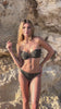 Bold and refined, the "Tanzania" bandeau bikini top asserts a couture look with its revisited leopard print in deep khaki shades enhanced with shimmering gold touches .